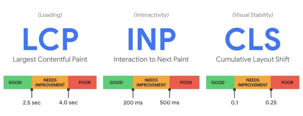 Berikut tiga metrik utama dalam Core Web Vitals:
